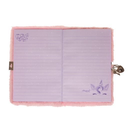 Enhjørning ædelsten Dagbog med lås og plys forside