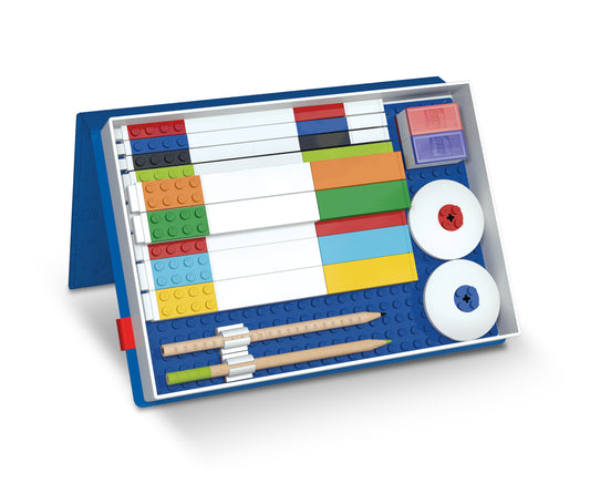 Flotte interaktive LEGO® stationery produkter fra IQ. Alle de populære stationery produkter kan bruges til at skrive, tegne eller andet og kan samtidig bruge sammen med LEGO®, da de alle har en LEGO klods funktion indbygget.