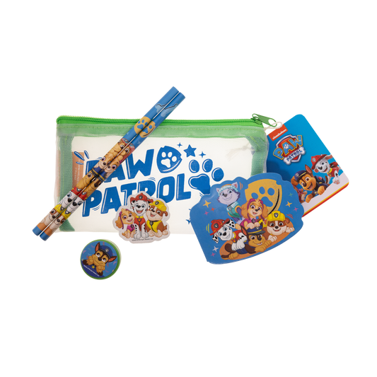 Paw Patrol fyldt penal hus med mesh, 2 blyanter, 1 rund blyantspidser og 1 viskelæder
