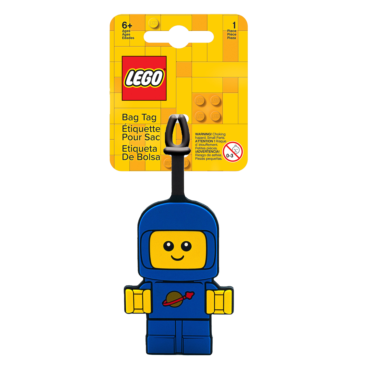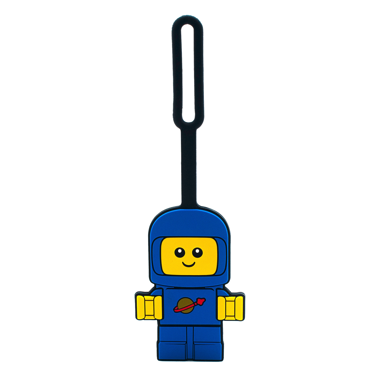"LEGO bagage tag i LEGO Spacebaby mønster. Fleksibel silikone og nem at tilføje til både kufferter og andre rejsetasker."