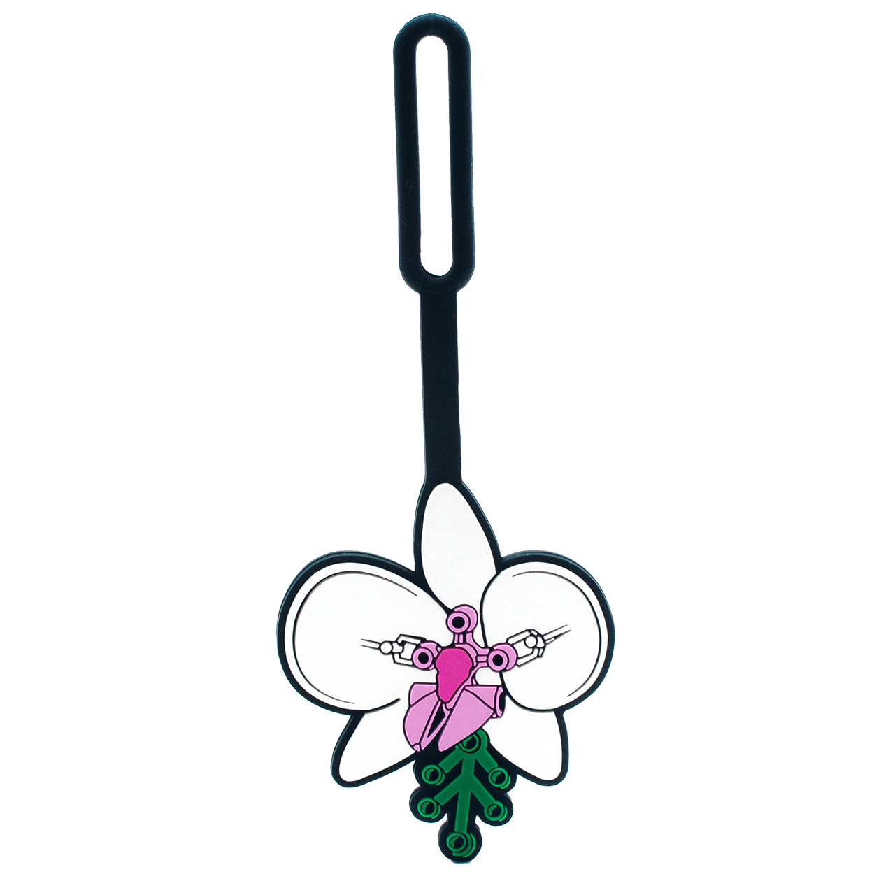 "LEGO bagage tag i LEGO Botanicals Orkide mønster. Fleksibel silikone og nem at tilføje til både kufferter og andre rejsetasker."