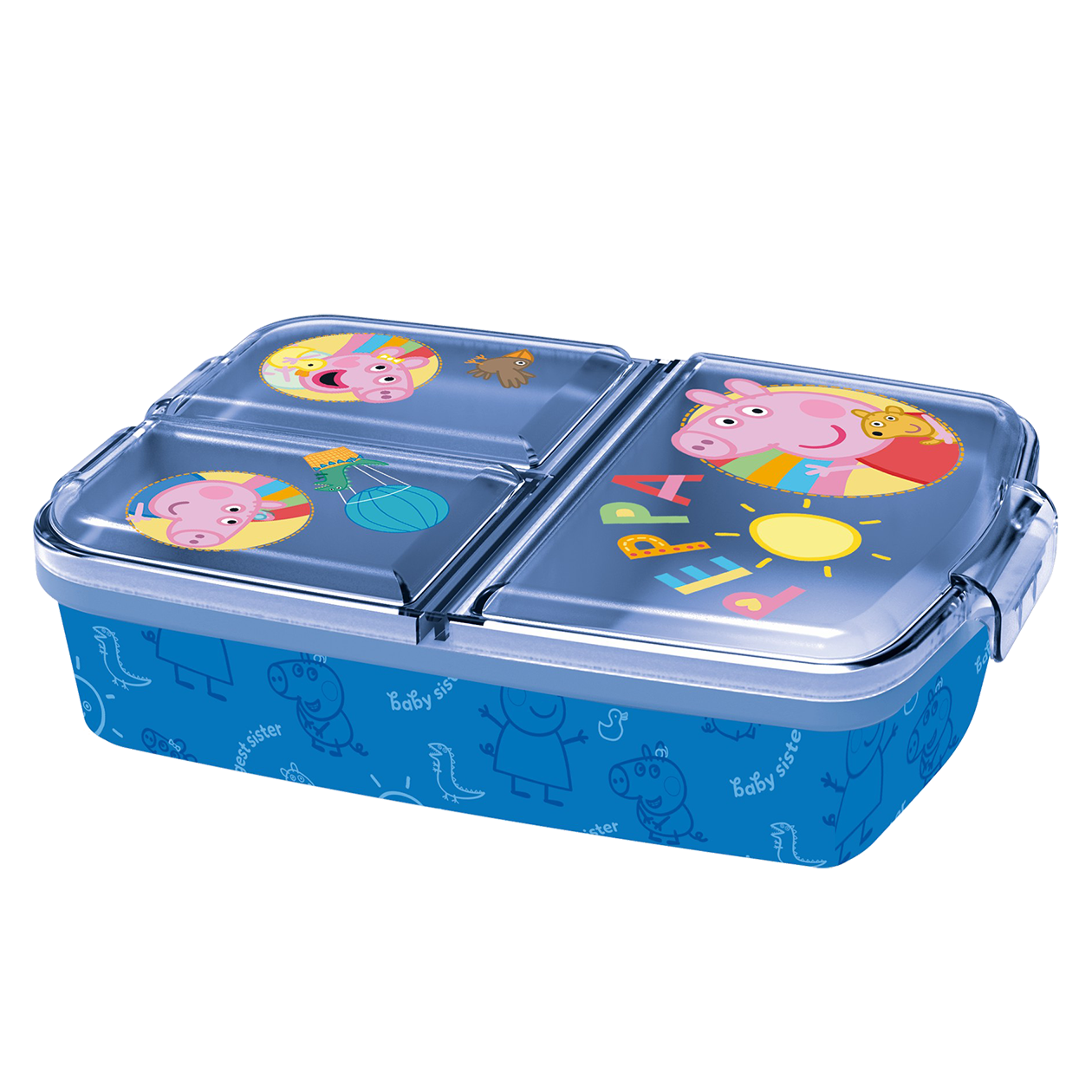 Gurli Gris multirums madkasse er perfekt til børns frokost og snacks. Med sine 18x13 cm er den kompakt og nem at tage med i skole eller på udflugt. Det farverige design med Gurli Gris gør madpakken sjov og indbydende. Madkassen har flere rum, så du kan opbevare forskellige madvarer adskilt.