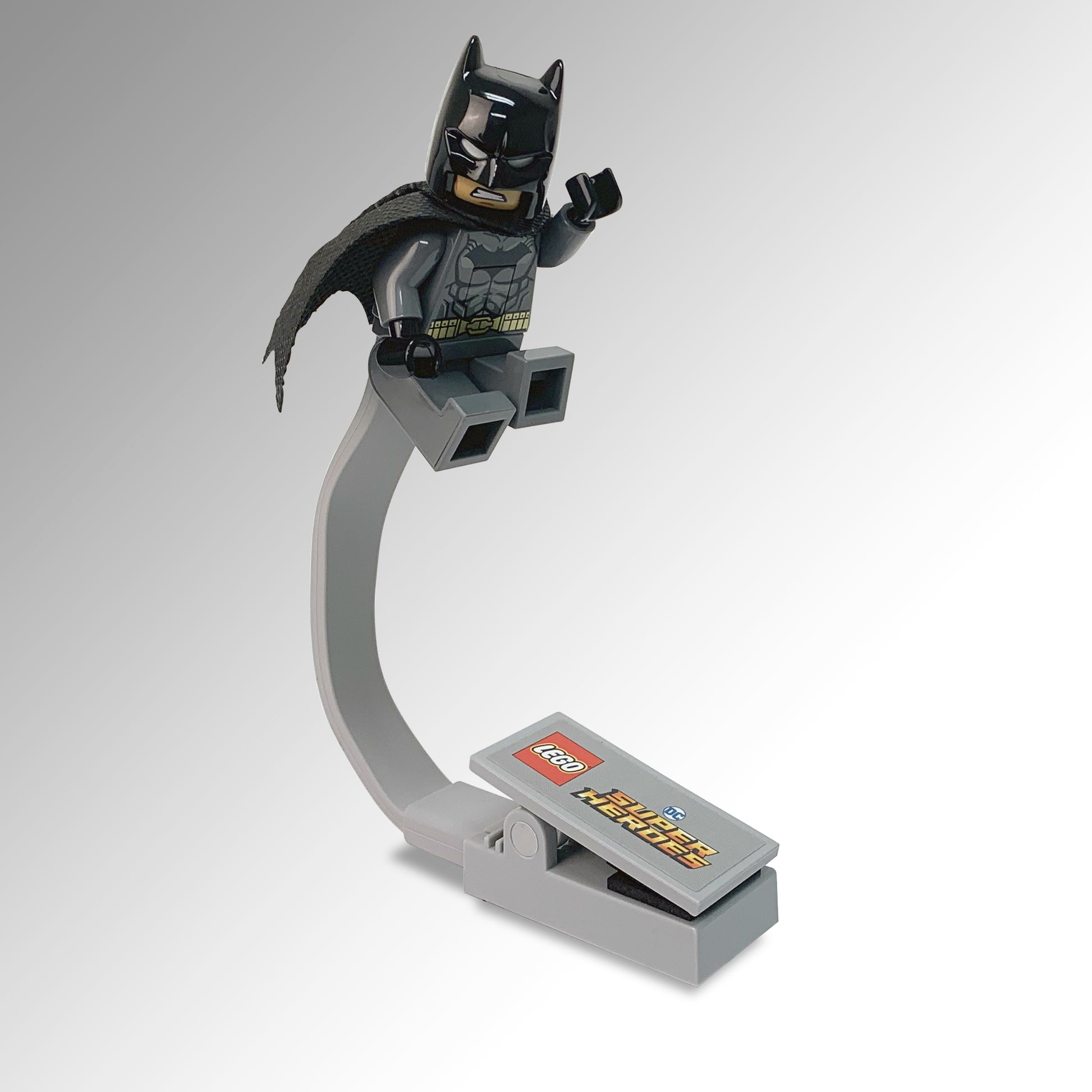 • 175% scaled up (compared to LEGO Minifigure) LED book lamp light with minifigure with clip.