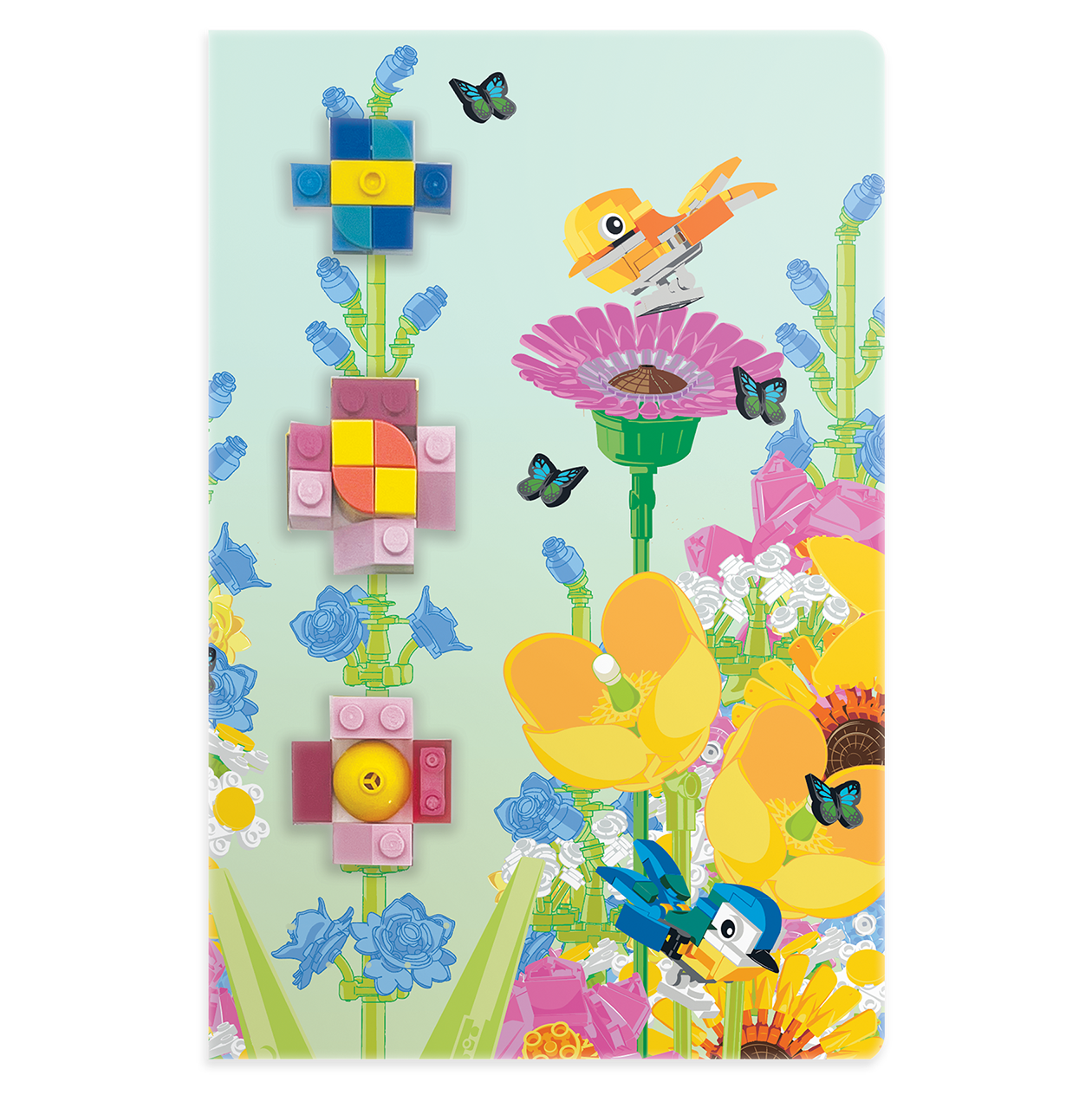 Denne unikke notesbog kombinerer LEGO's ikoniske design med smukke botaniske illustrationer, der inspirerer til både leg og læring. Perfekt til at fange dine idéer, skitser og daglige noter.