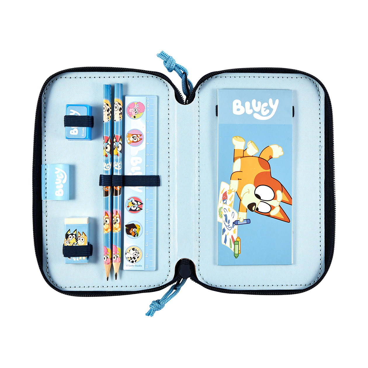 Bluey Dobbeltdækker penalhus med 2 lynlåse med indhold
