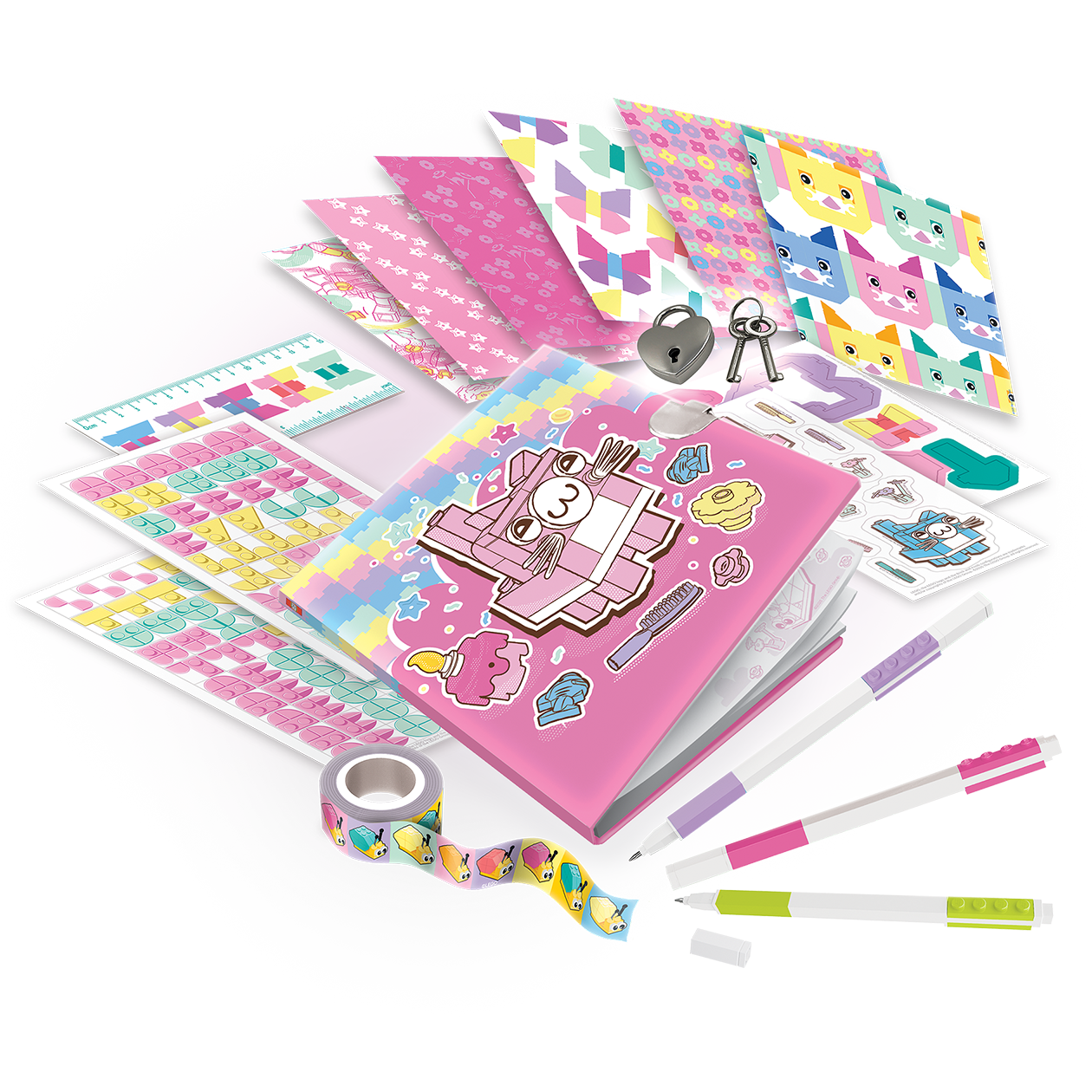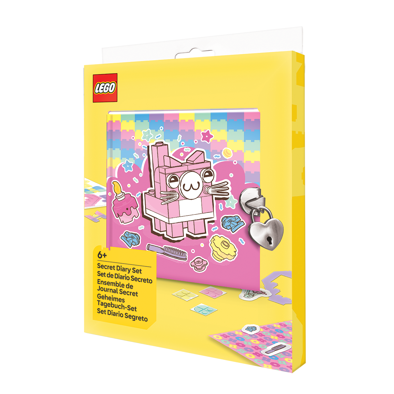 Dette sæt inkluderer en dagbog med et sødt LEGO® kattemotiv, samt en LEGO® gel pen og en masse klistermærker. Dagbogen kan låses med en nøgle og er derfor perfekt til at skrive dine tanker og drømme, og gemme dem væk for kun dine nærmeste at se. Perfekt til unge dagbogsskribenter, der elsker at skabe og lege!
