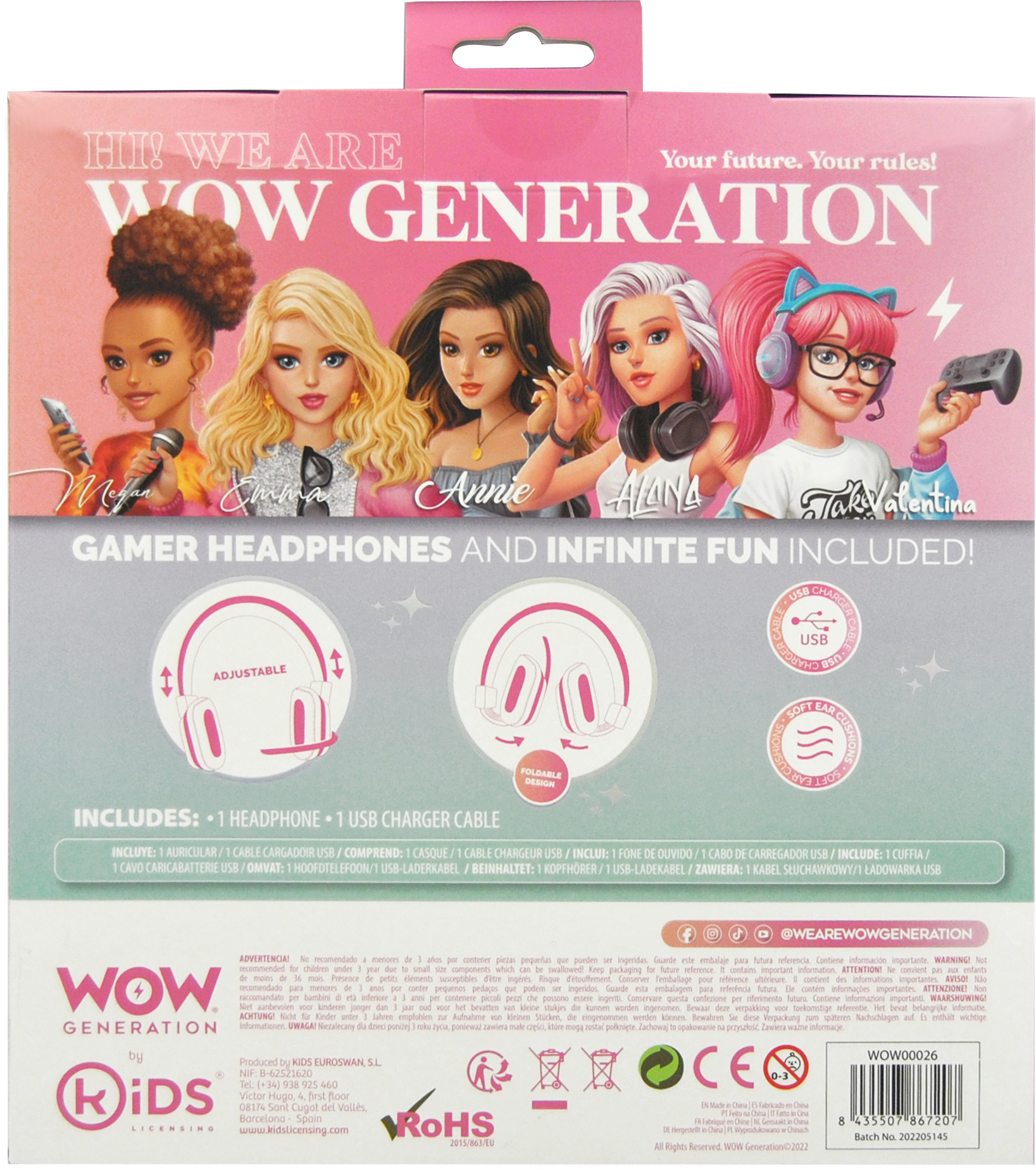 For en total WOW-effekt er disse hovedtelefoner det perfekte tilbehør til at føle rytmen perfekt, som Alana ville sige. Med Bluetooth 5.0-forbindelse kan hovedtelefonerne tilsluttes enhver enhed for at afspille dine yndlingssange hvor som helst og overalt. Derudover giver hovedtelefonerne med højttalerfunktion med sin indbyggede mikrofon piger mulighed for at streame og live videoer med total komfort.