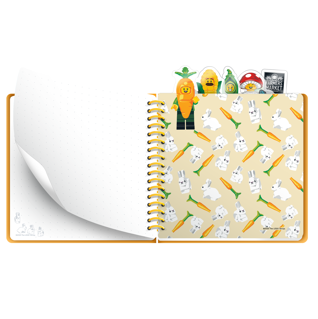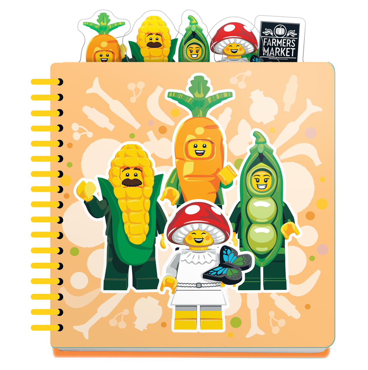 "Notesbog med LEGO grøntsagspersoner motiv. Notesbogen er med spiral ryg."