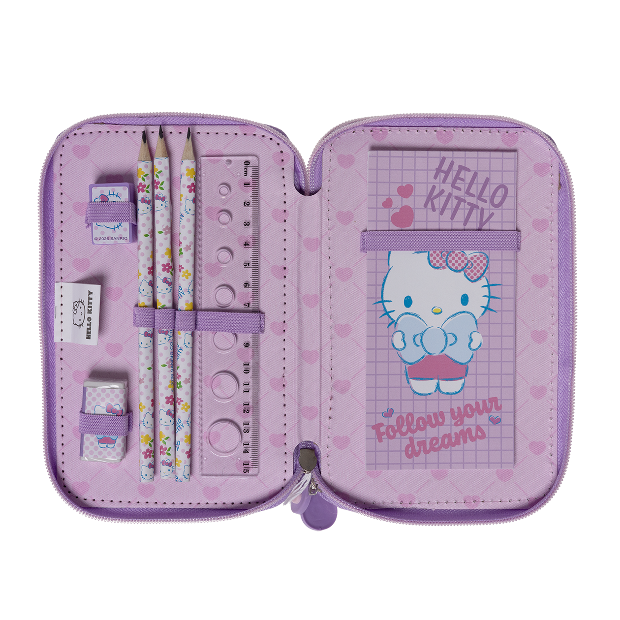 HELLO KITTY, fyldt penalhus, 3 rum