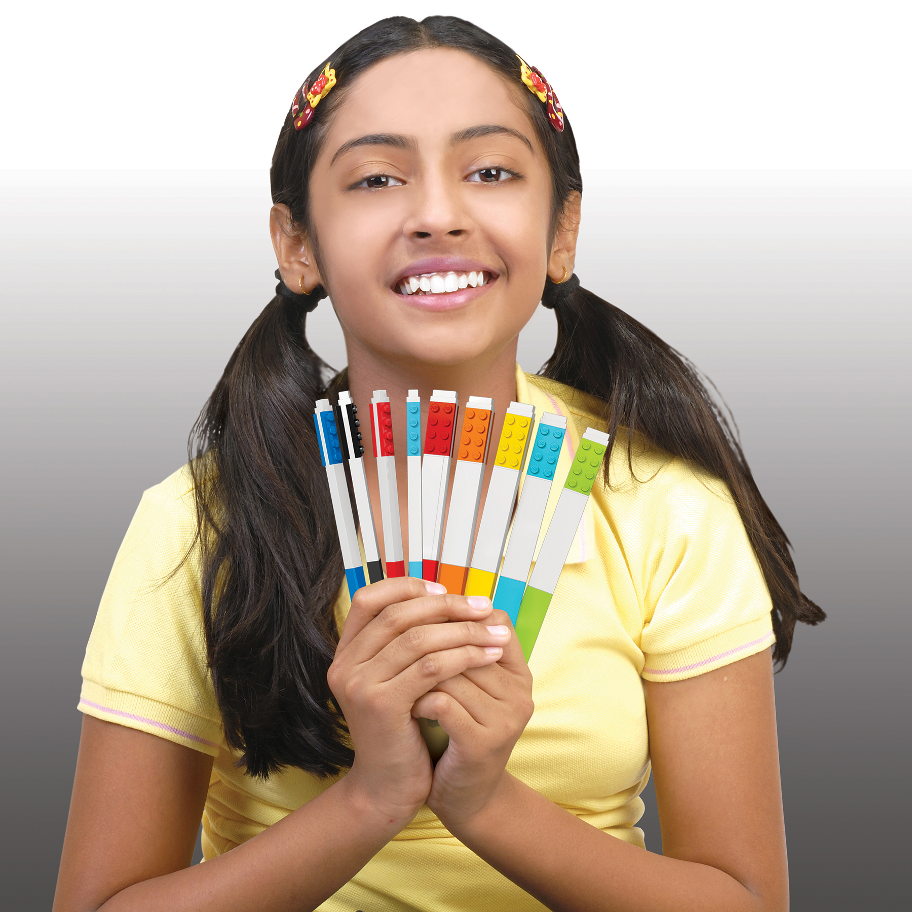 Konstnärliga LEGO®-fans kommer att älska att skriva, rita och till och med bygga med detta ikoniska LEGO®-set med 10 markörer. Dessa markörer med tunn spets i 10 vackra färger är en perfekt present till barn från 6 år och uppåt – eller kanske en bra idé inför skolstarten. Alla markörer har inbyggda LEGO 2x4 brickor, så de kan kombineras med varandra eller med andra LEGO kontorsmaterial. Ägaren kan också ge dem en personlig touch genom att lägga till sina egna LEGO-klossar eller minifigurer. De kreativa möjligheterna är oändliga!