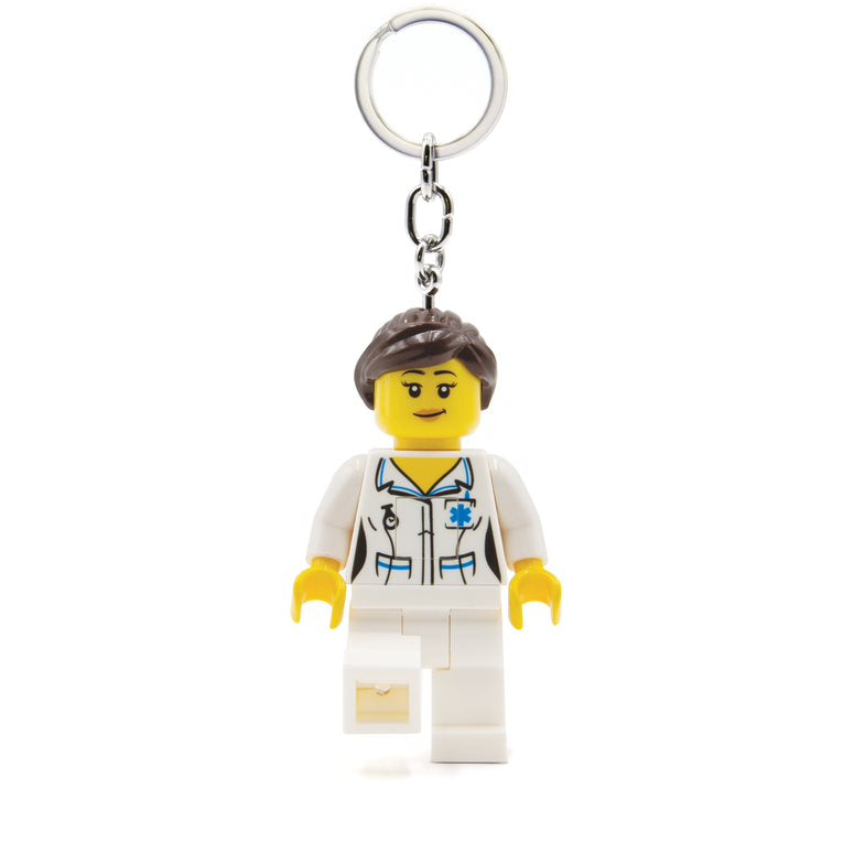 LEGO nyckelringen kan användas som en smart ficklampa genom att trycka på magen. Den har en kedja med spiralring, så den kan enkelt hängas på till exempel skolväskan eller tillsammans med nycklarna. Legofiguren kan röra huvudet, armarna och benen.